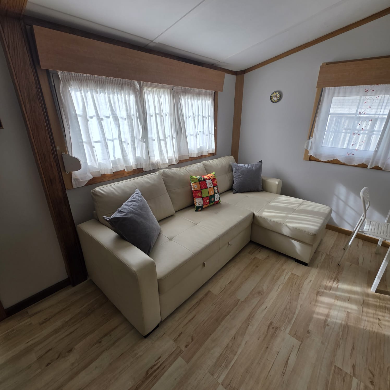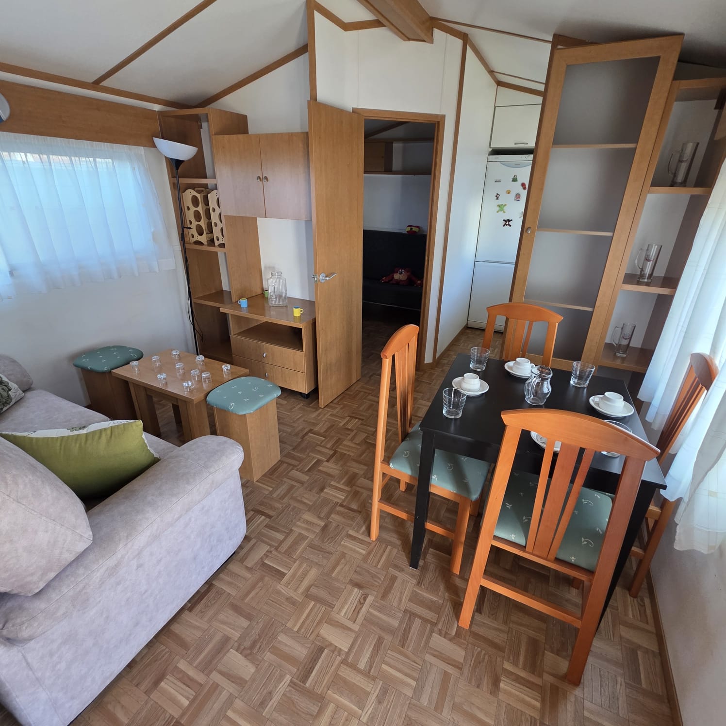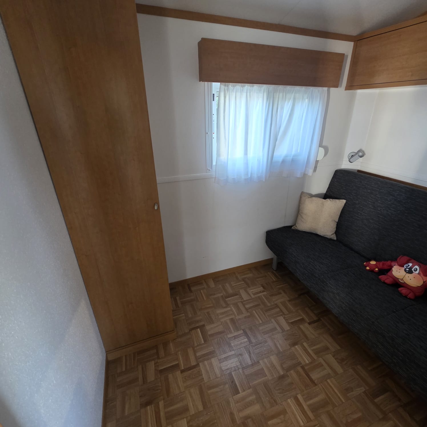 - 2º Habitación convertido en sala de estar con sofá cama, armario ropero y altillos (posibilidad de poner dos camas paralelas).