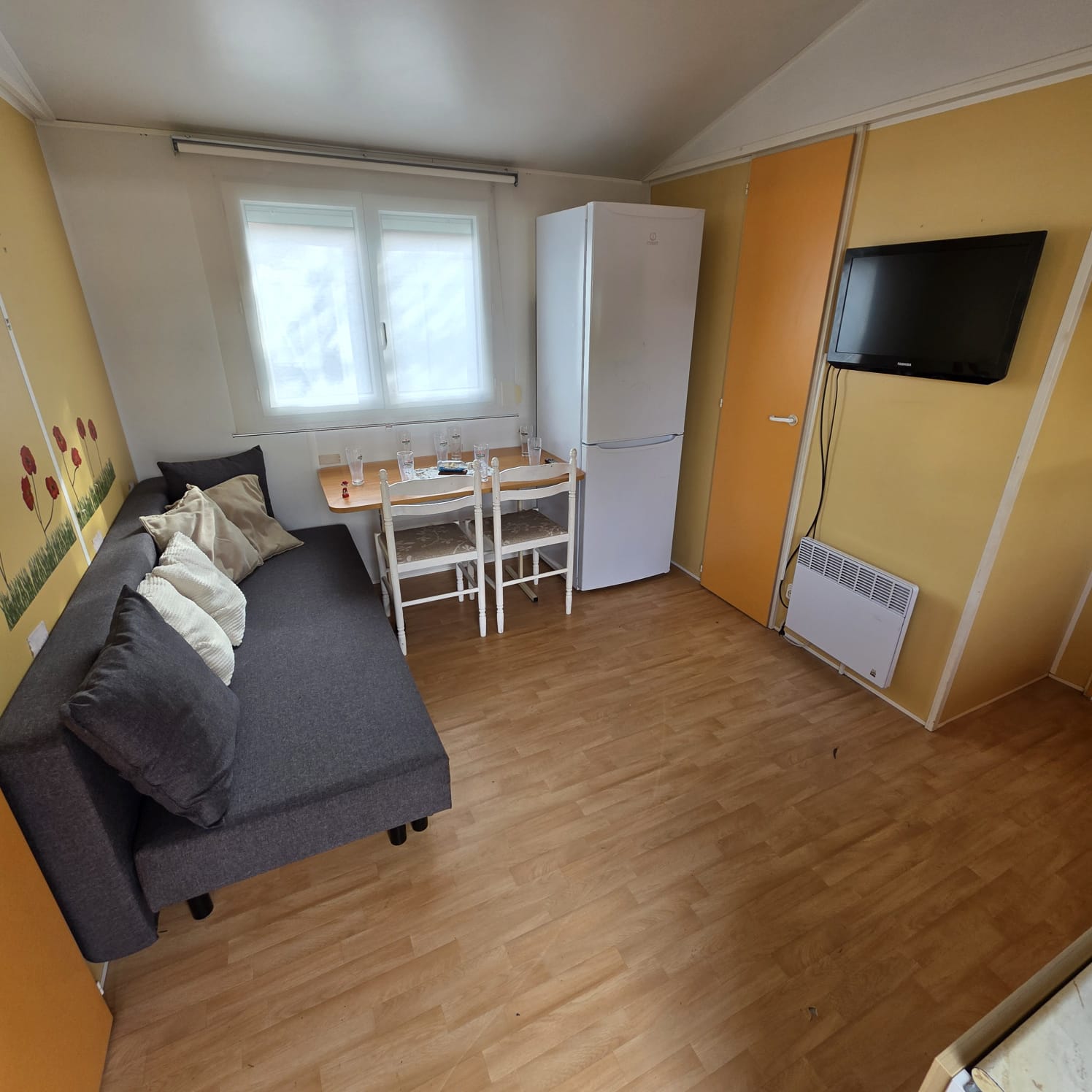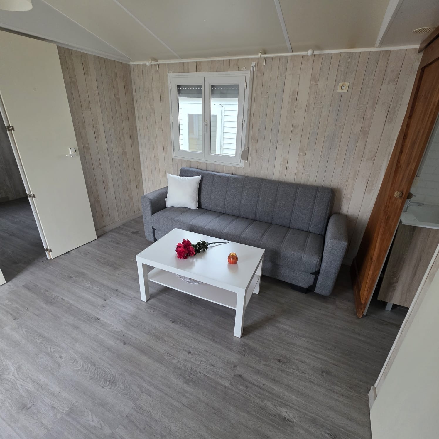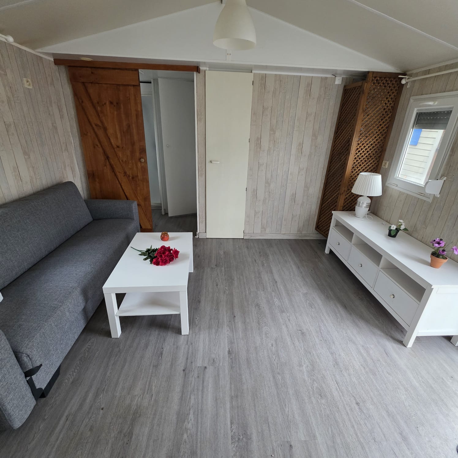 - 2º Habitación convertido en sala de estar con sofá cama, armario ropero y altillos (posibilidad de poner dos camas paralelas).
