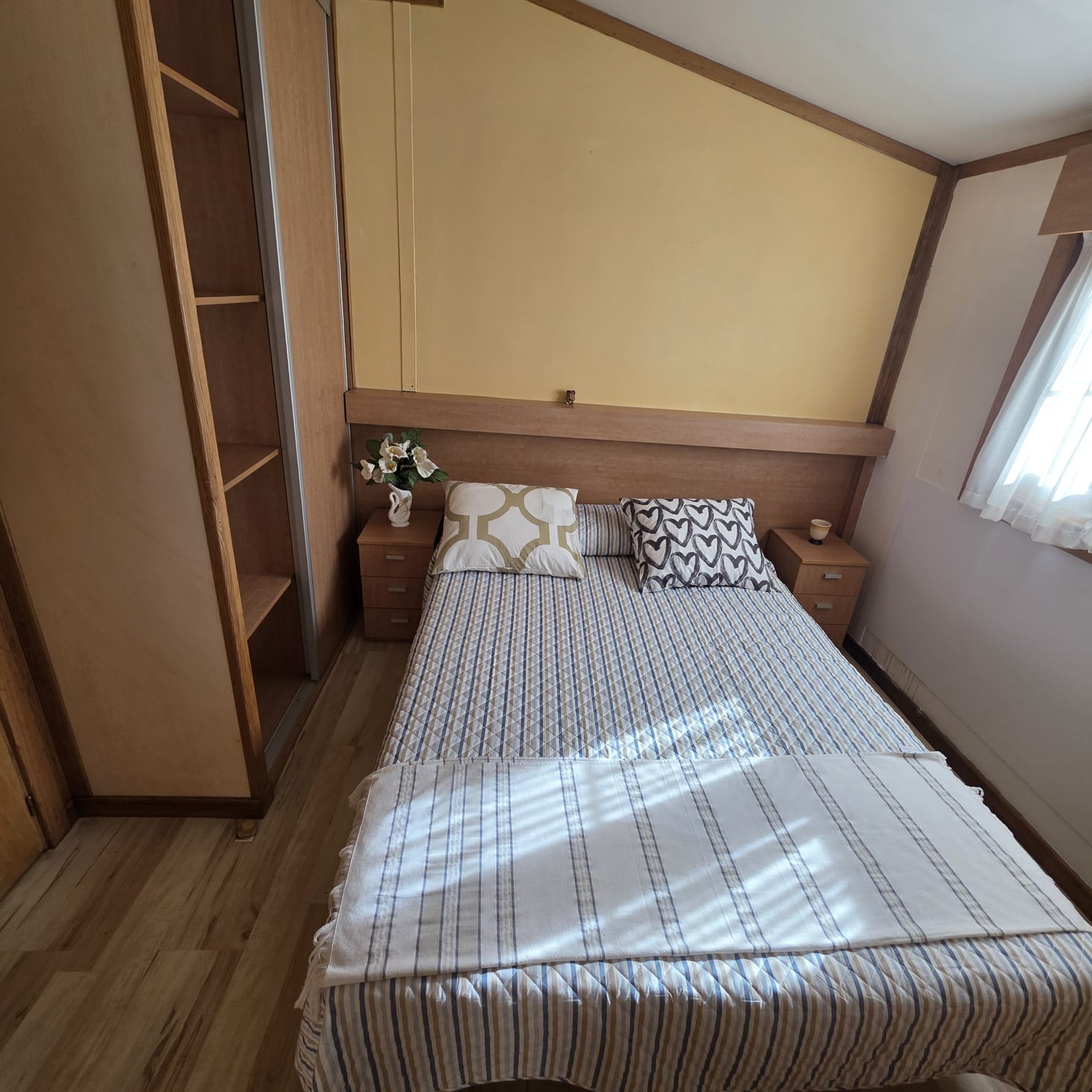 - Dormitorio principal con armarios laterales y altillos para almacenaje.
