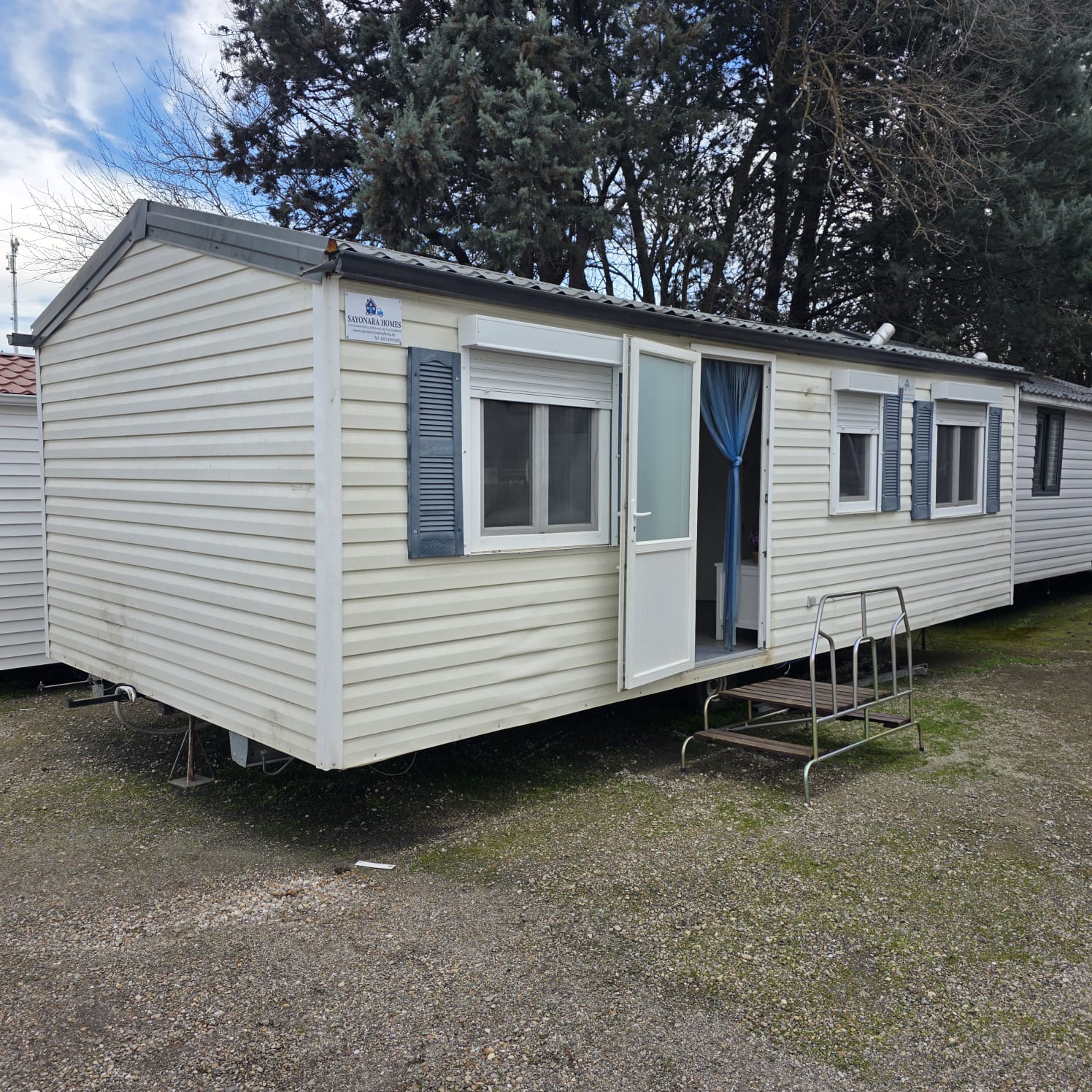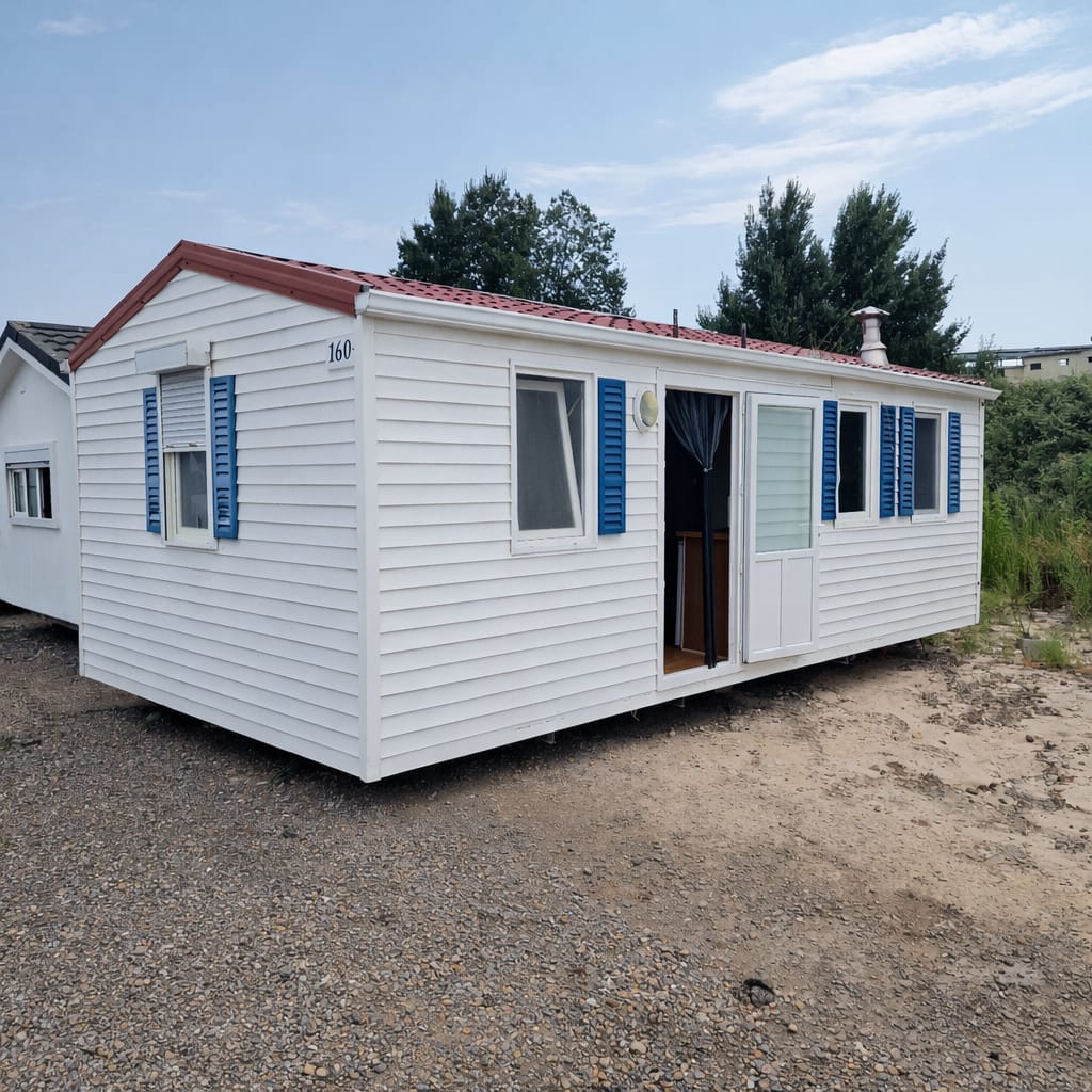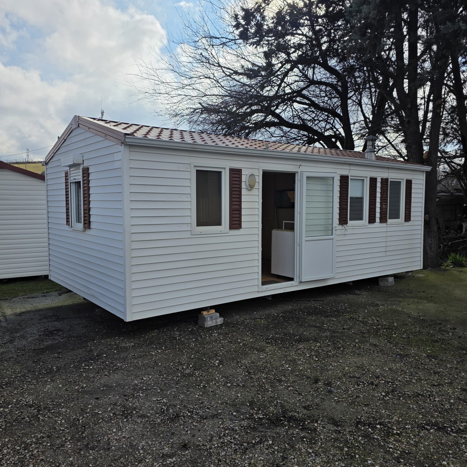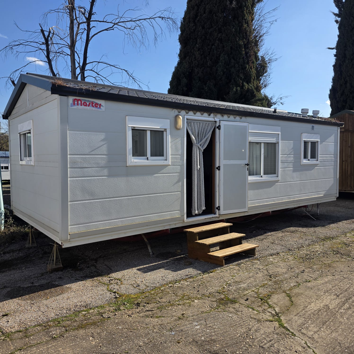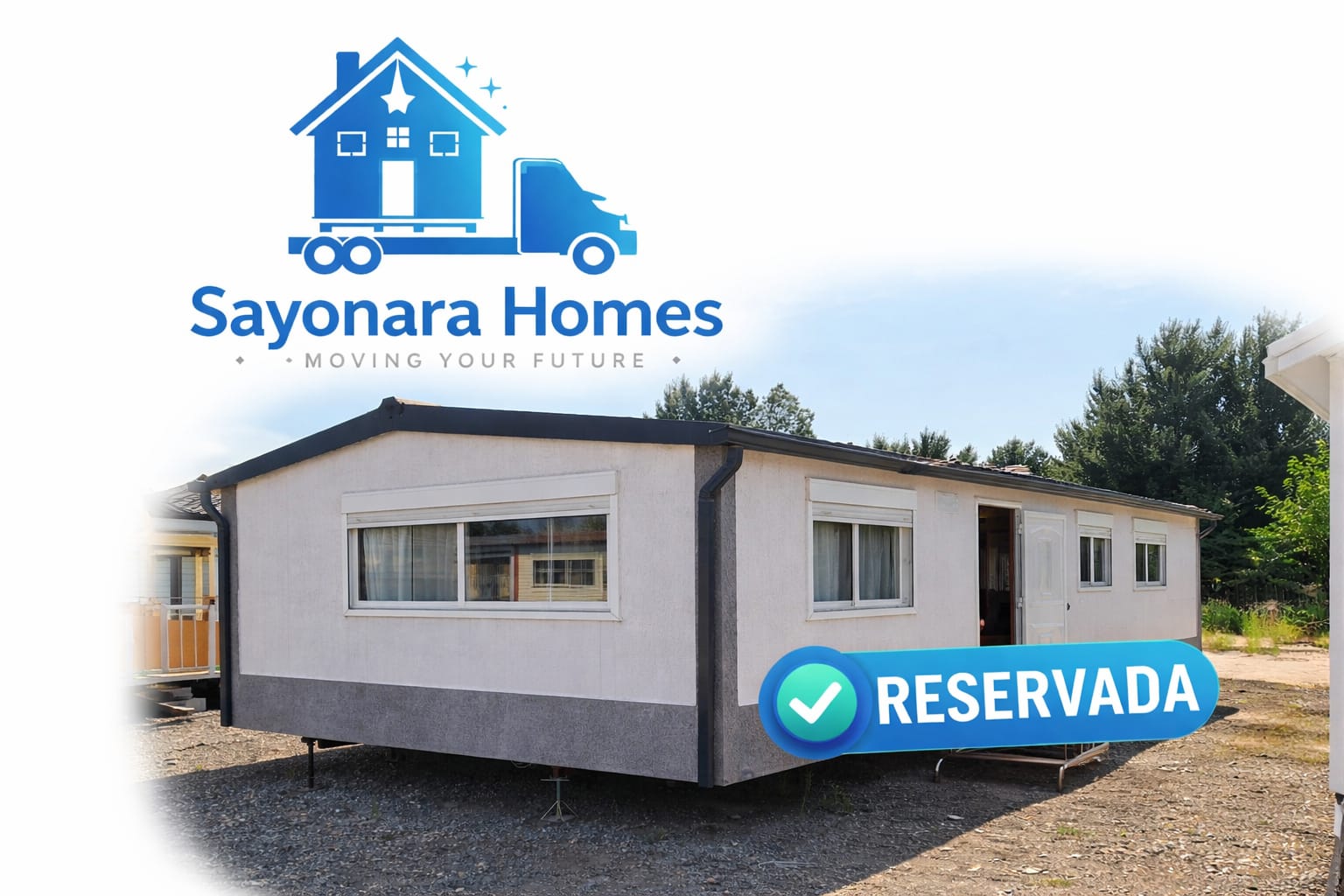 - Fachada exterior en panel sandwich de 60mm de espesor y acabado en vinilo imitación madera (SIN MANTENIMIENTO).