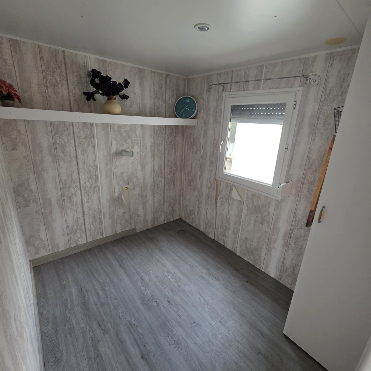 - Suelo vinílico imitación madera de fácil limpieza y mantenimiento.