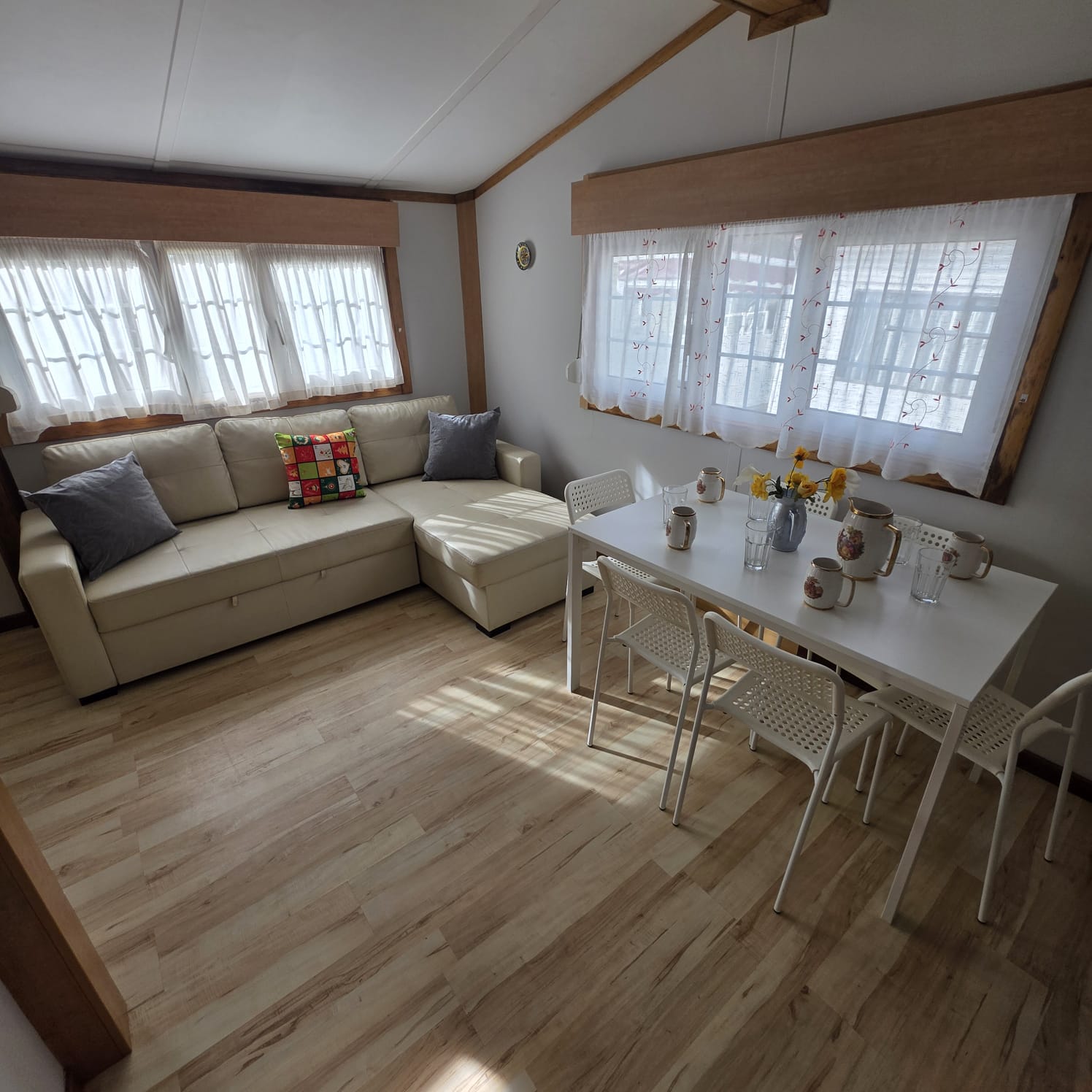 - Ventanas abatibles de PVC con cristales dobles y persianas.