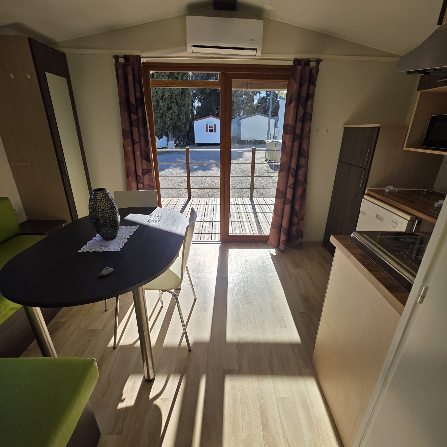 - Ventanas de PVC abatibles con cristal doble y oscurecedores tipo cassette.