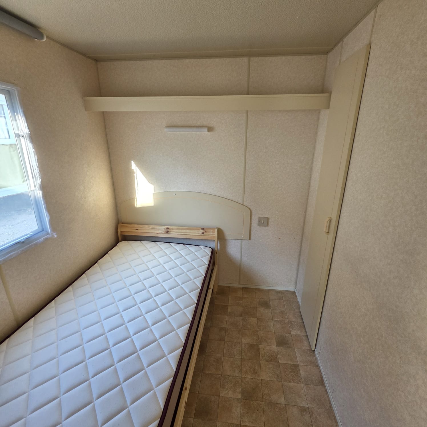 - Dormitorio individual con altillos y armario ropero.