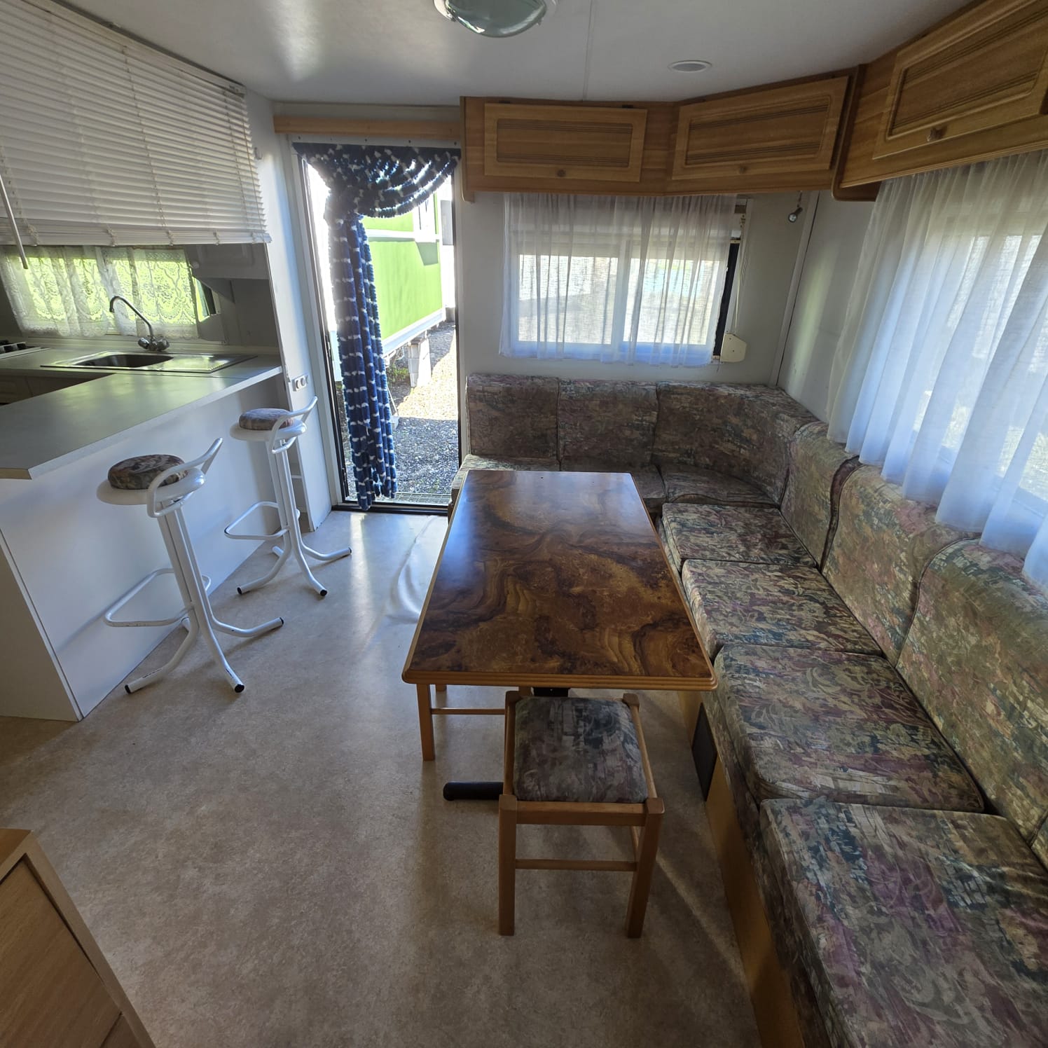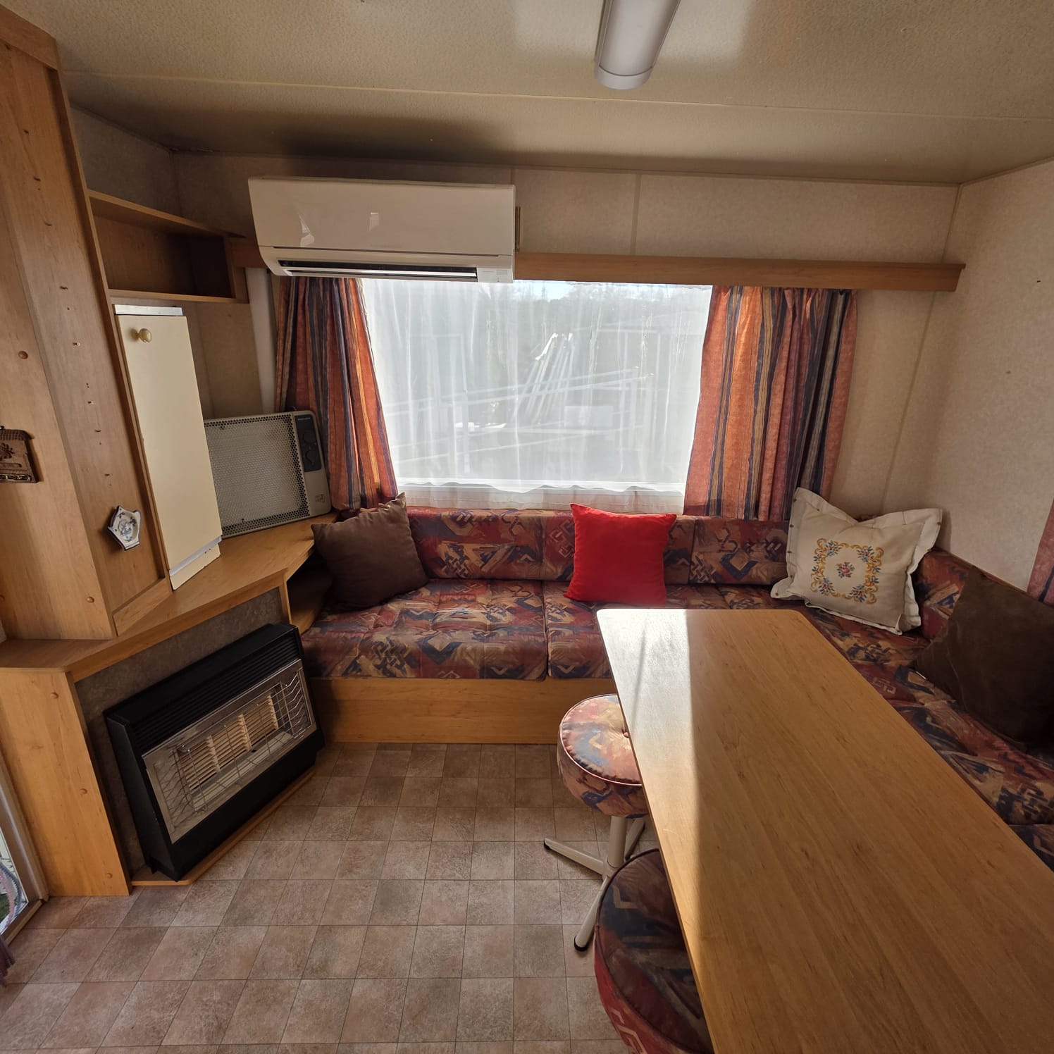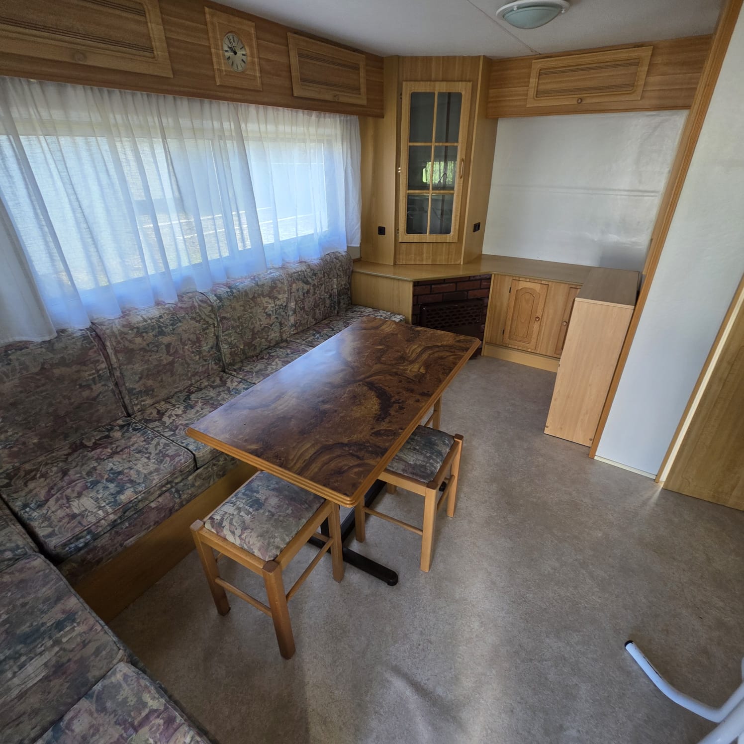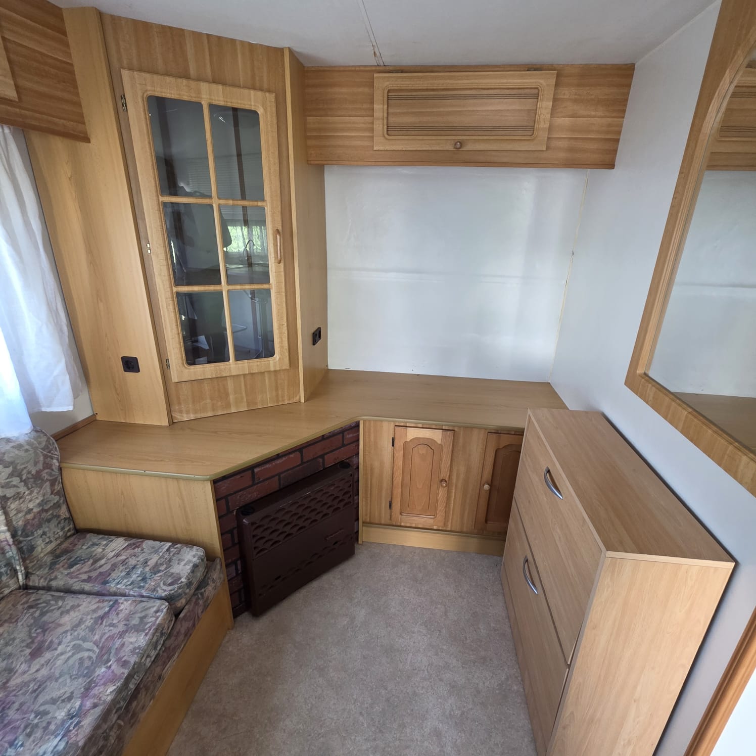 - Salón con sofá cama rinconero con numerosos arcones y altillos de almacenaje.