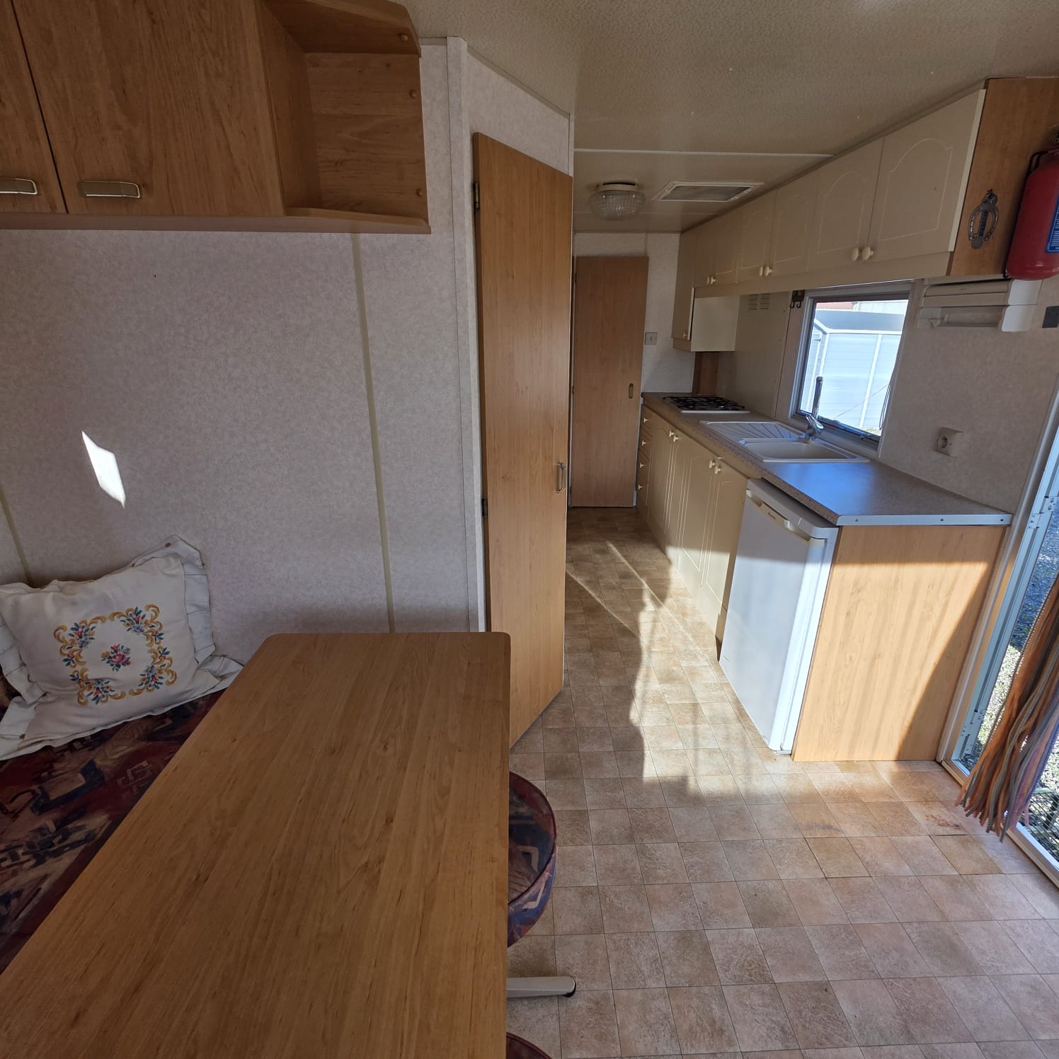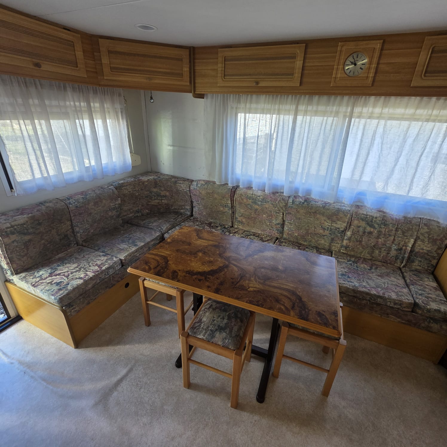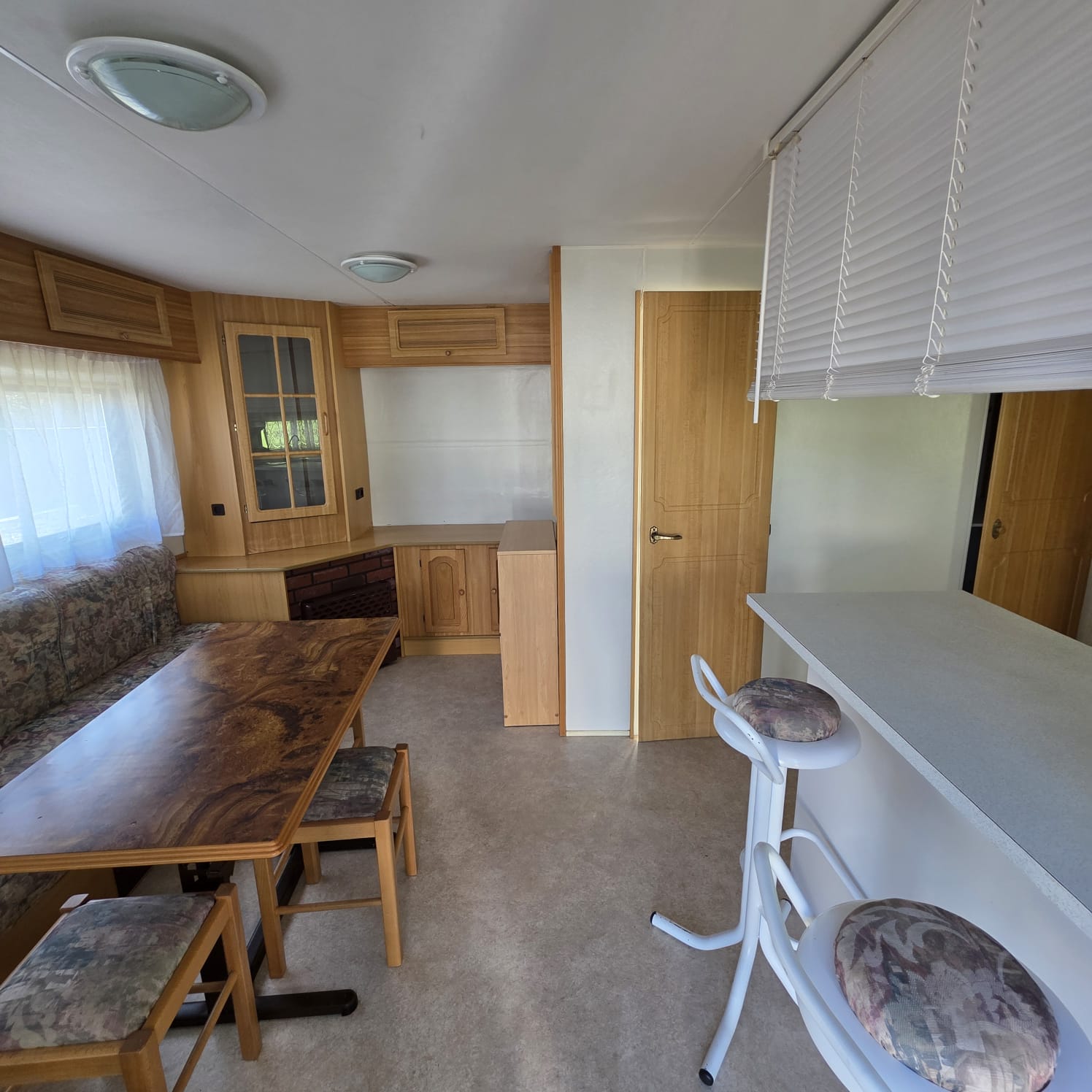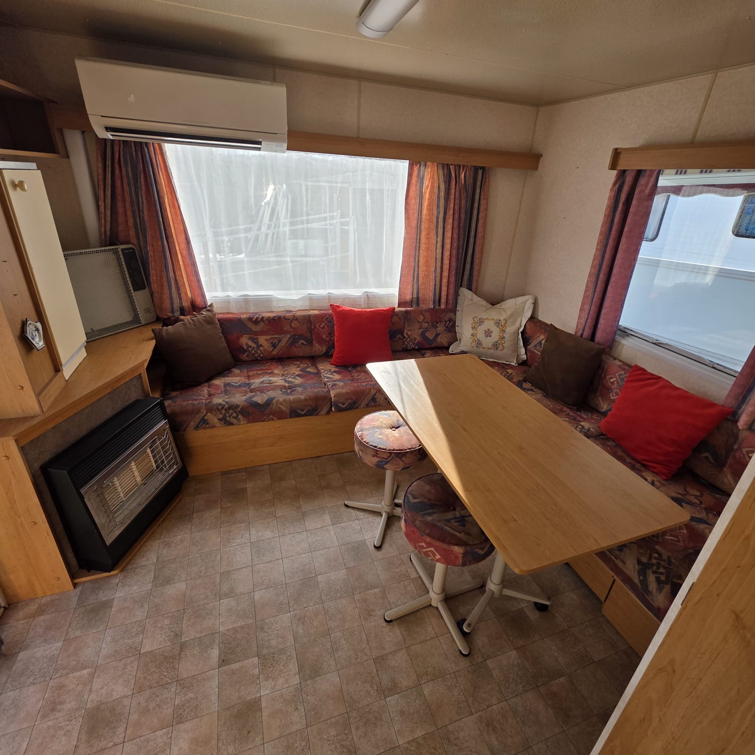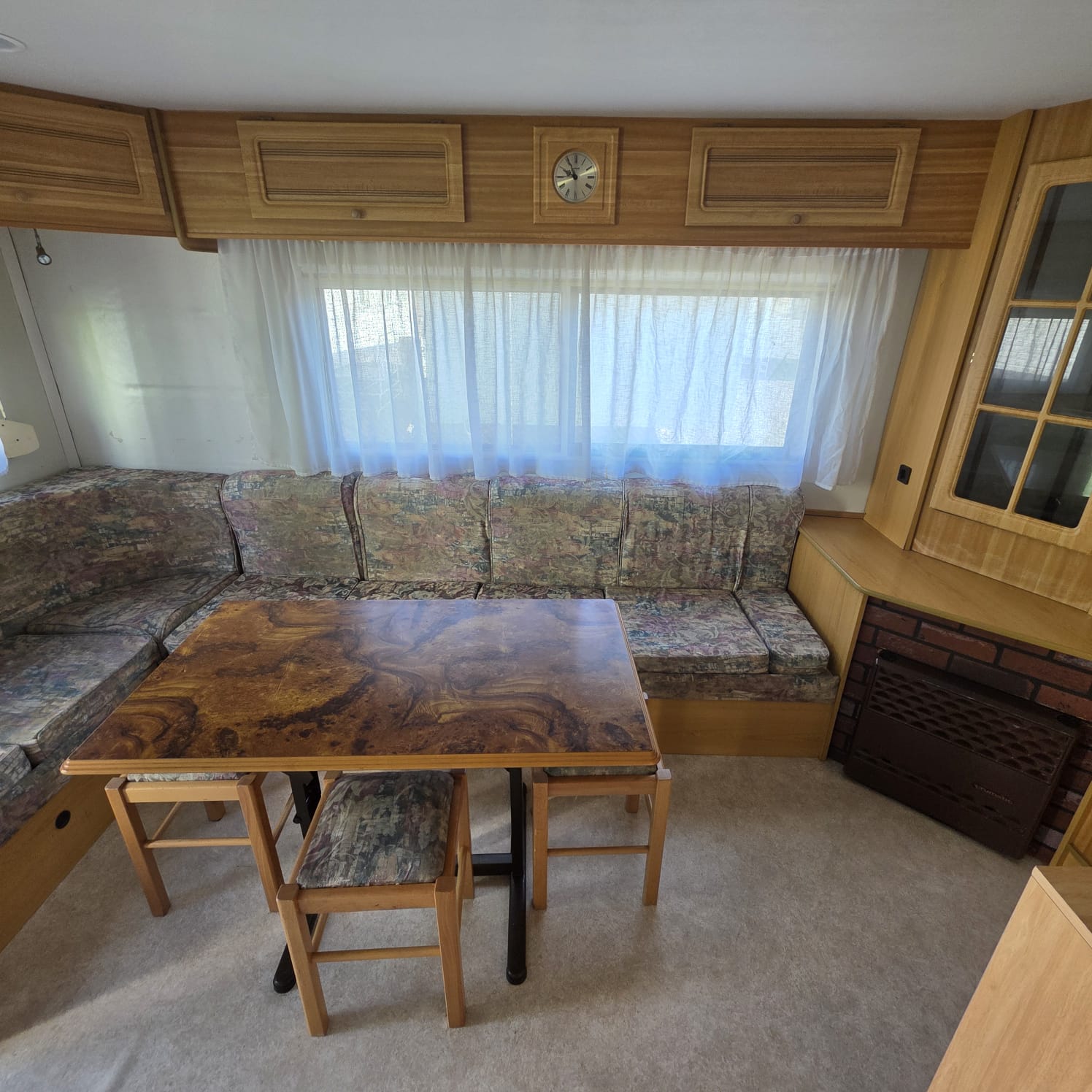 - Salón con sofá cama rinconero con numerosos arcones y altillos de almacenaje.